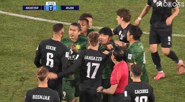 第17分钟,池忠国飞铲放倒敌手,两边随后爆发突破,突破事后裁判未出牌。