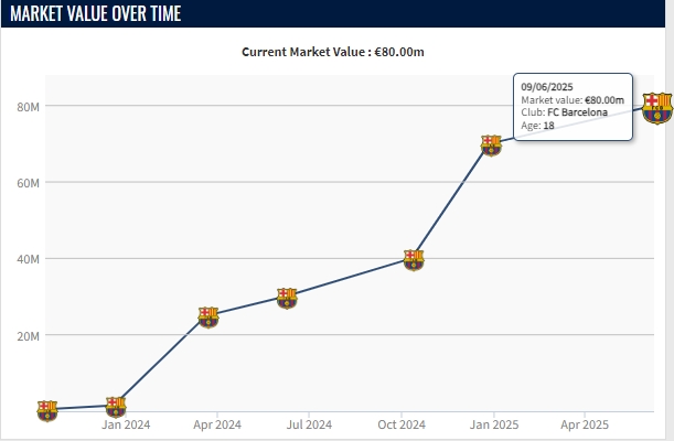 库巴西出自于巴萨青训,2023年从后生队参预巴萨一线队时,他的身价惟有150万欧。但两年间他获取了长足的逾越,展现了充分的后劲,身价也曾暴涨到如今的8000万欧。