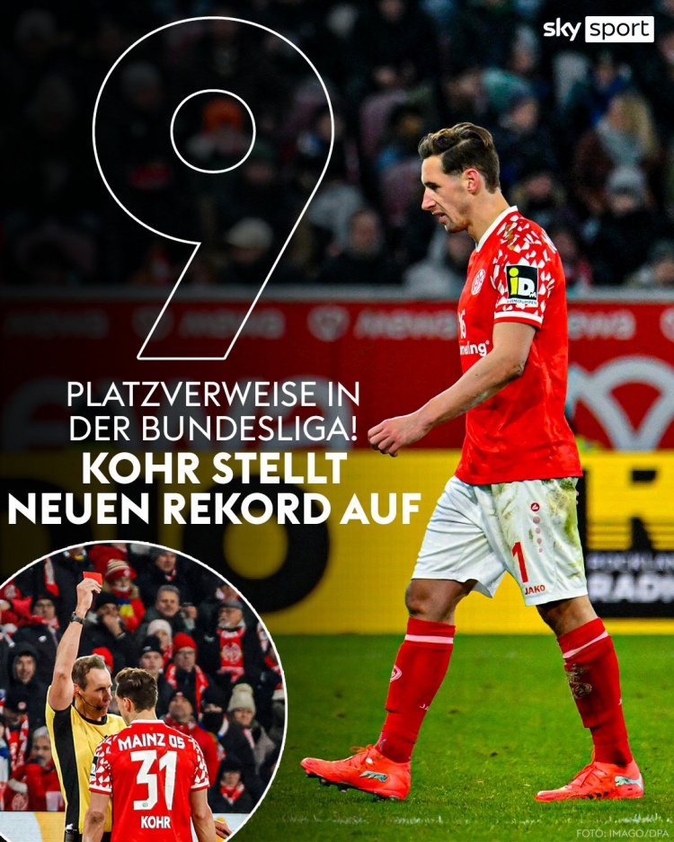 据德国太空体育统计,多米尼克·科尔于今在德甲比赛中领到9张红牌,成为德甲历史染红次数最多的球员。