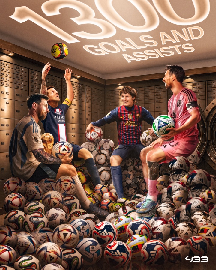 至此,梅西照旧完成行状生计径直参与1300球的里程碑!具体为896球,404助攻!