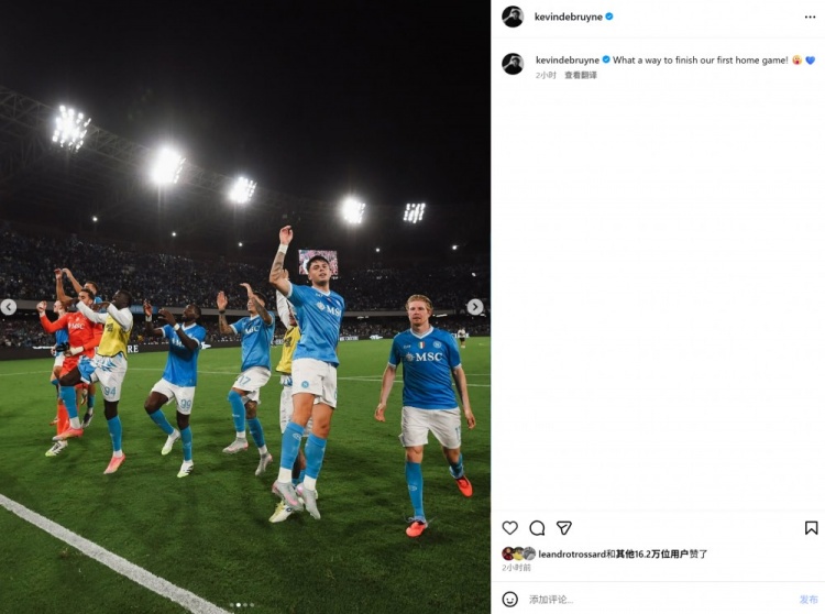 本场比赛德布劳内首发登场,他在个东说念主社媒也晒出赛后与队友庆祝告捷的相片,配文写说念:“以如斯棒的神志得回赛季主场首胜!”