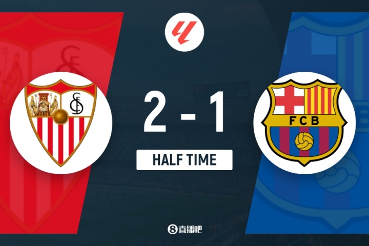 上半场伤停补时6分钟,半场松手,巴萨暂1-2塞维利亚。
