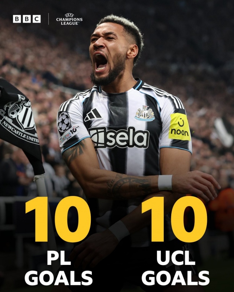 据BBC统计,纽卡本赛季欧冠4场比赛打进10球,进球数目与本赛季10场英超比赛交流。