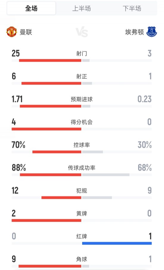 11月25日讯 2025-26赛季英超联赛第12轮,曼联主场0-1不敌埃弗顿。