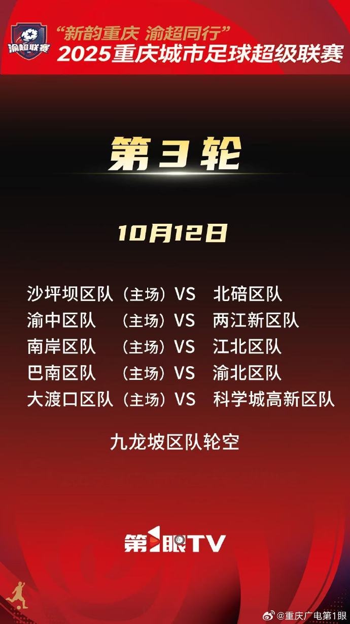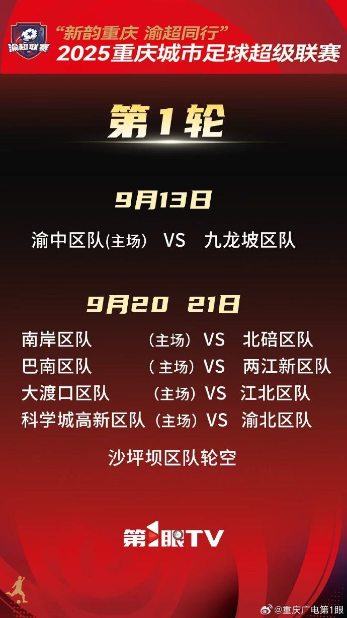 9月12日讯 首届“渝超”将于9月13日在渝中区大田湾开通场开赛,这是大田湾开通场自2003年甲A以来初次举办大型足球赛事。9月12日,渝超对阵图出炉!首场比赛渝中队将对阵九龙坡队。
