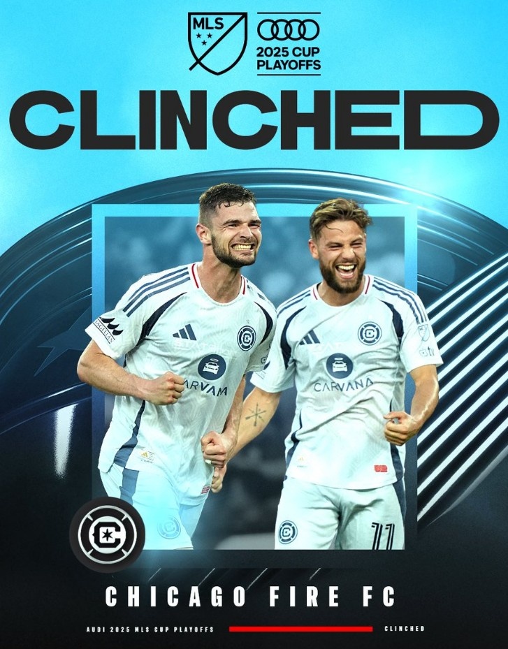 好意思职联官方晒出芝加哥火焰海报,祝福球队自2017年以来初度参加季后赛。