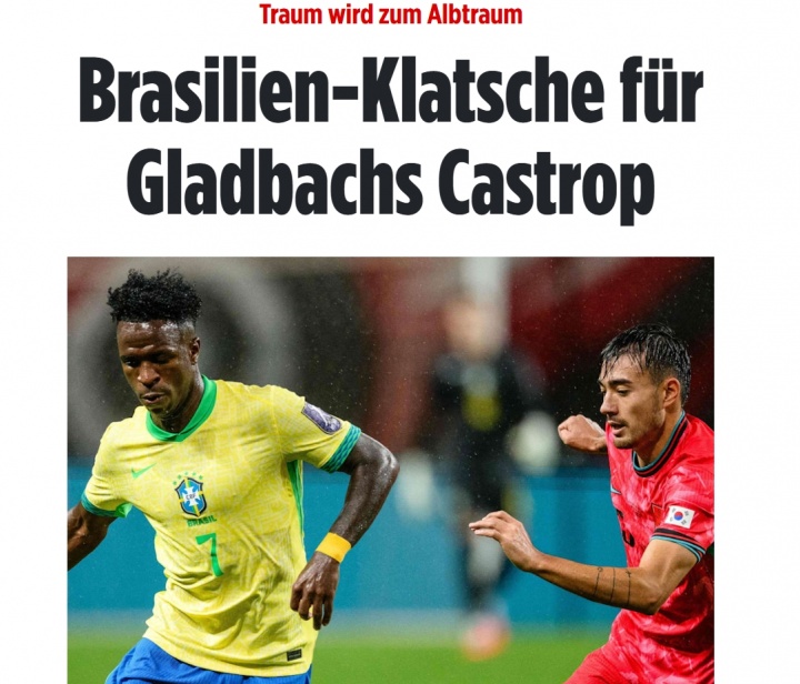 《图片报》以《好意思梦变恶梦:巴西队给门兴队的卡斯特罗普千里重一击》为题写谈:“门兴中场卡斯特罗普经历了好多孩子在街头足球或俱乐部青训时就梦念念的场景:代表国度队参加对阵巴西队的比赛!