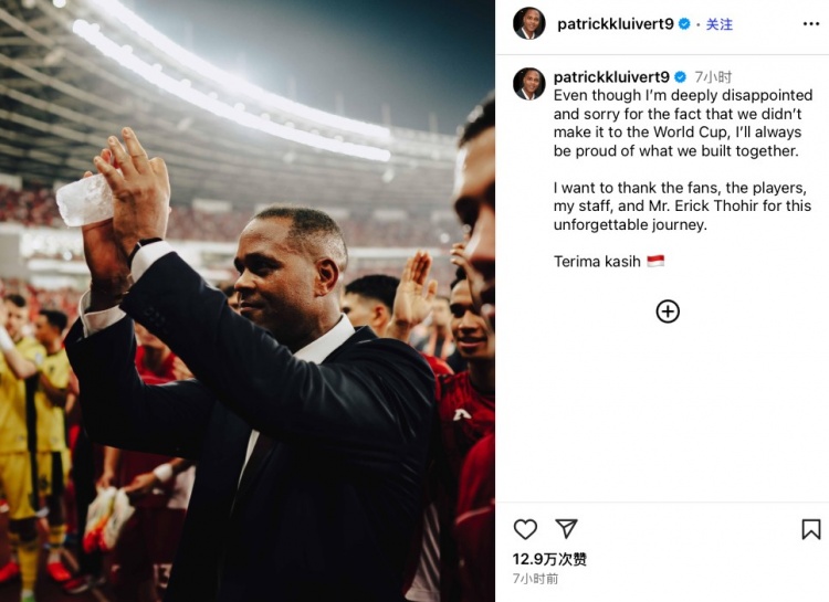 鄙人课官宣后,克鲁伊维特在个东说念主社媒向印尼国度队告别,他写说念: