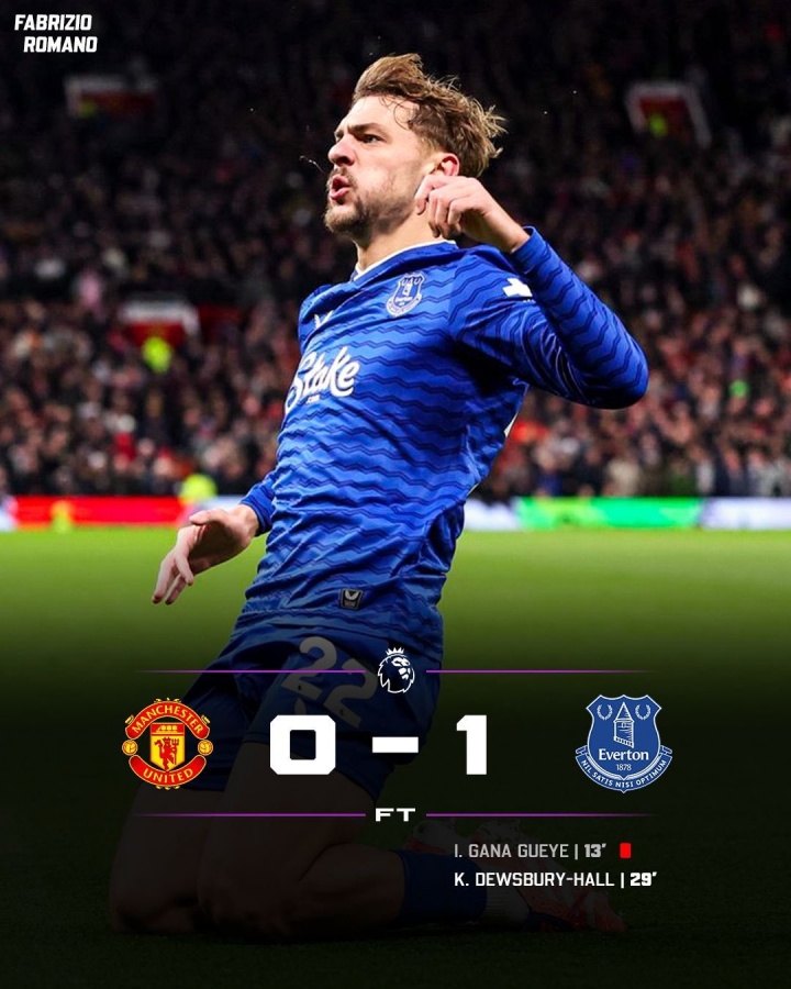 3轮不堪!曼联0-1十东谈主埃弗顿 盖耶内耗批颊队友直红B费失良机
