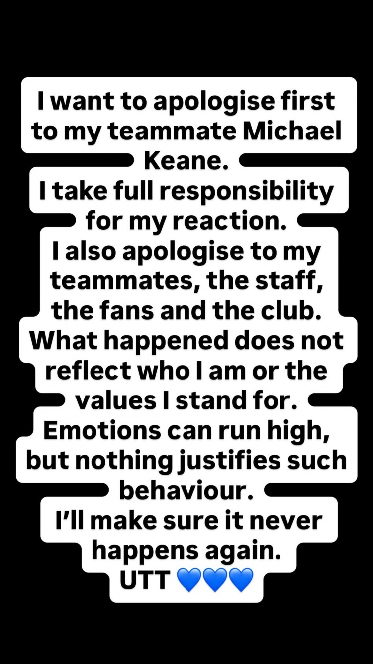 英超第12轮比赛,埃弗顿客场1-0打败曼联。此役埃弗顿球员盖耶与队友基恩发生突破,他因批颊基恩被裁判出示红牌罚下。盖耶社媒发文,为我方的当作谈歉。