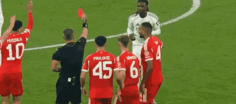 第86分钟,卡马文加在对凯恩违例 后,为了延缓对手防守反击,用手将球抱起拖延时间,又吃到一张警告 。不过此时主裁判 似乎忘记了卡马文加已有一张警告 ,在拜仁球员的提醒下出示驱逐 将卡马文加罚下。
