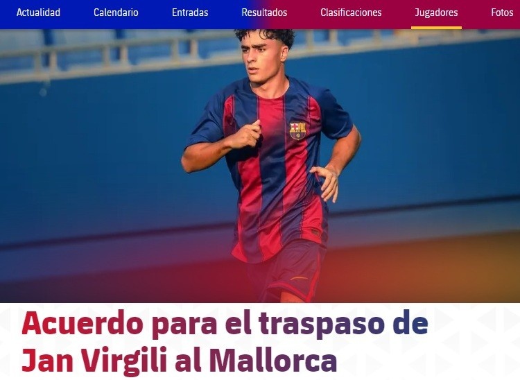 8月30日讯 本周巴萨官方宣布边锋小将扬-维尔祯祥转会加盟马洛卡,而扬-维尔祯祥随后发晓示别巴萨。