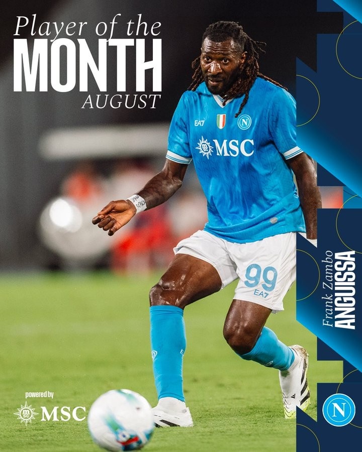 9月8日讯 那不勒斯官方音信,球队中场安古伊萨当选队内8月最好球员。