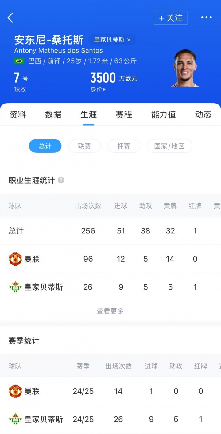 09月08日讯 据西媒《寰宇体育报》报谈,安东尼与贝蒂斯的契约中有价值5000万欧的解约条目,最高可达6000万欧元。