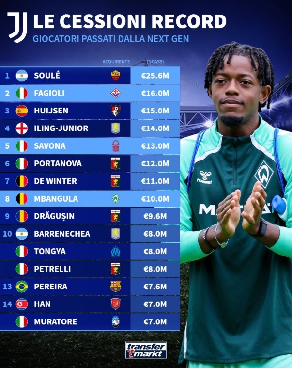 9月12日讯 德转统计了尤文壮盛代球员卖东说念主榜,苏莱2560万欧加盟罗马居首,法乔利、赫伊森分居二三位。